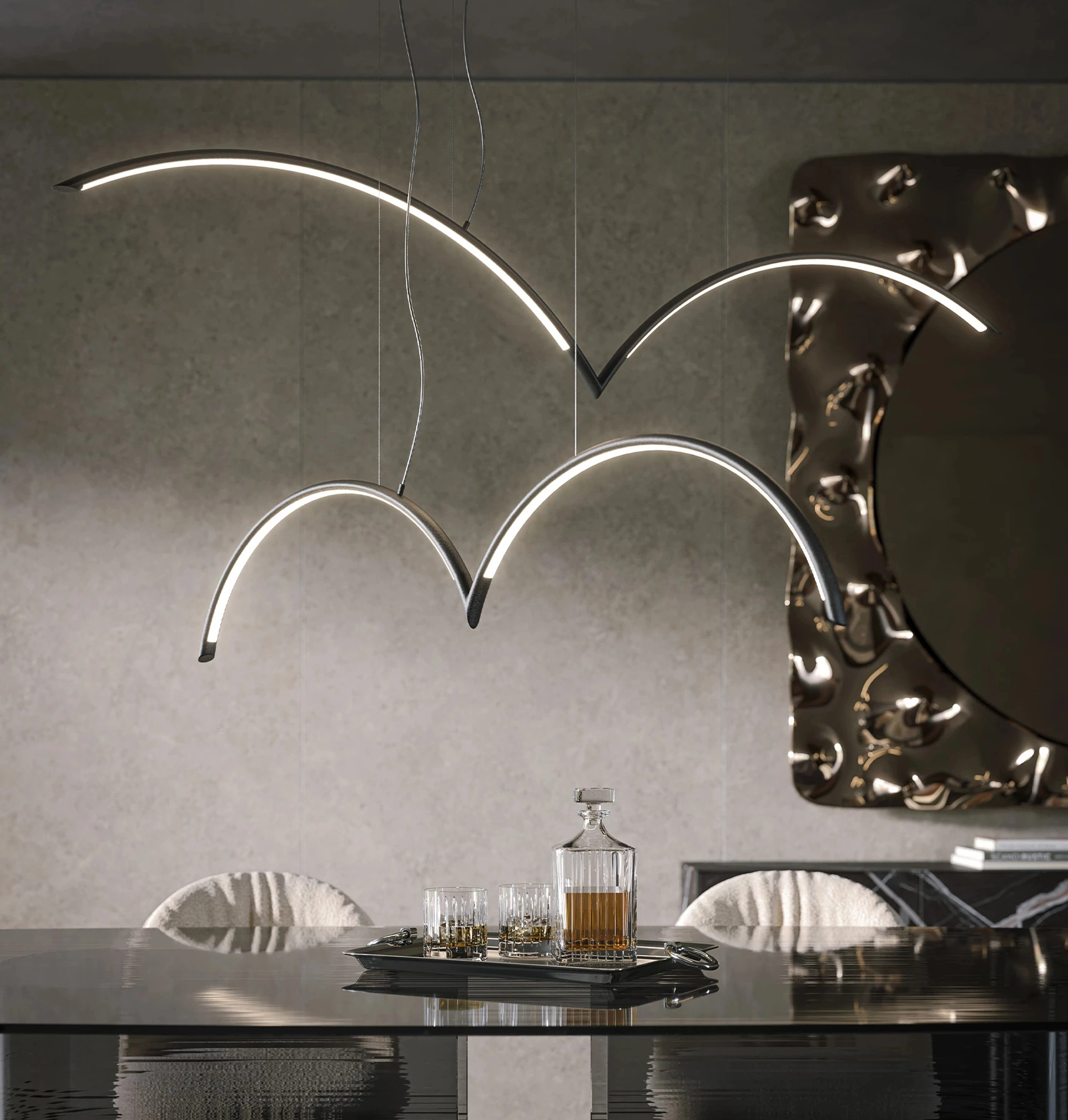In negozio presentiamo le lampade di maggior efficienza sul mercato per dare risposta a ogni richiesta: le più originali proposte di qualità ti attendono. L'universo delle lampade ha un linguaggio peculiare ma dialoga contemporaneamente con l'arredamento di casa, coniugando le doti di funzionalità con quelle estetiche. Non vincola accostamenti stilistici: Lampada a sospensione Mood di Tonin Casa in metallo si caratterizza per qualità di finiture e contenuto tecnologico. Tonin Casa propone svariate lampade a sospensione per interni in grado di connotare gli spazi con un elevato contenuto estetico, sempre in materiali durevoli.
