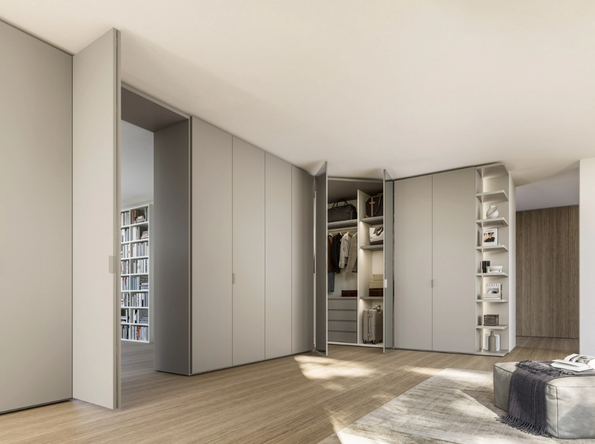 Affidabilità e comfort sono gli ingredienti che, di pari passo con un elevato contenuto estetico, connotano tutti gli Armadi ad angolo moderni della marca Sangiacomo. Armadio Terminale Angolare Anta Liscia di Sangiacomo: se desideri arredatori professionisti per preventivi e progetti, realizza con noi la casa che hai sempre desiderato. Armadio Terminale Angolare Anta Liscia di Sangiacomo in laccato opaco: in un ricco catalogo di mobili e oggetti accessori, questo modello ti farà completare la tua zona notte come l'avevi immaginata. Se desideri creare una stanza funzionale ed esteticamente gradevole, compila il form o facci visita per ottenere infromazioni, complementi e accessori nell'ambito dell'Arredamento Casa. Una diversificata varietà di arredi in laccato opaco come questo guardaroba con ante battenti nell'immagine.