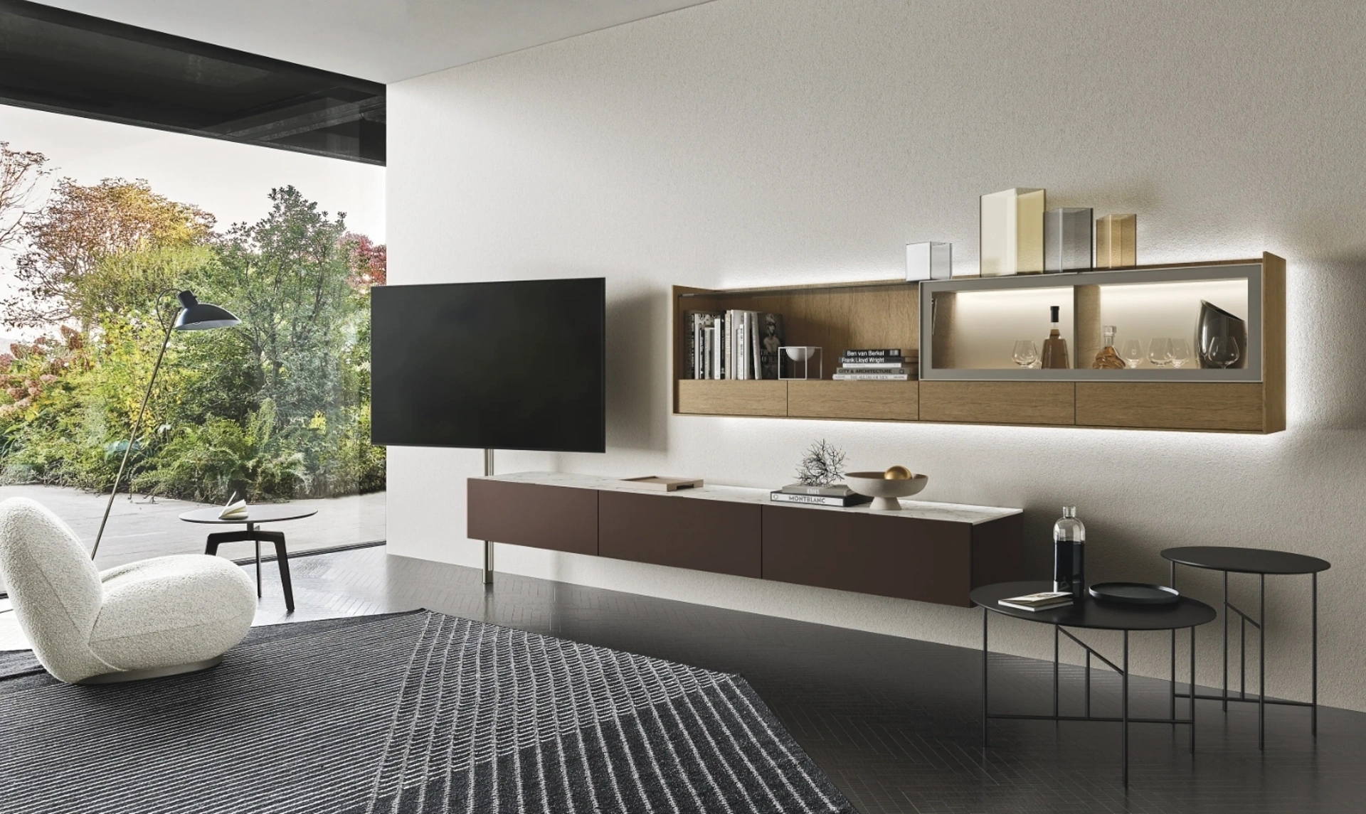 Questa parete attrezzata è una delle soluzioni della firma e ti consentirà di arredare il soggiorno secondo le più particolari problematiche abitative. Attraverso un gioco dinamico di accostamenti fra accessori a giorno o vani chiusi, le Pareti Attrezzate moderne arredano il living usufruendo al meglio di ogni spazio. Per informazioni e preventivi sulla Parete Attrezzata Cabaret Glass 01 di Sangiacomo nella fotografia contattaci! Il modello proposto è realizzato in laccato opaco, ma grazie ad una grande varietà di finiture, tonalità e forme, potrà adattarsi a stili di ogni genere.