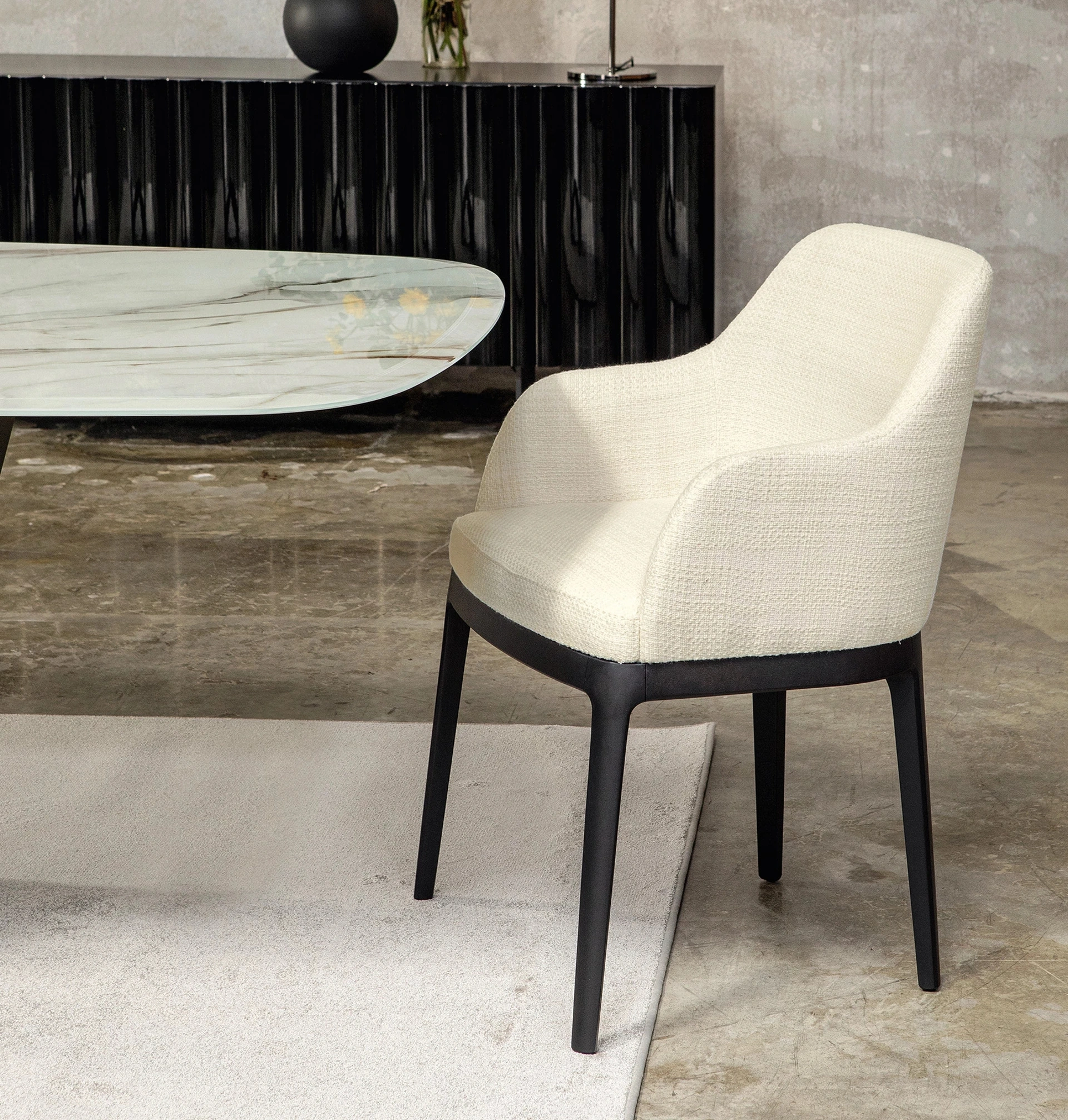 Una vasta scelta di sedie fisse da pranzo ti attende nel nostro showroom: contattaci per informazioni e preventivi e ottimizza i tuoi interni con l'eccellenza che solo Tonin Casa sa assicurarti per mobili e oggetti accessori. Se vuoi una sedia in tessuto per valorizzare l’atmosfera di casa, ottieni informazioni sul modello nell'immagine e trova un tavolo coordinato. Nel soggiorno o nella cucina, le Sedie sono arredamenti immancabili: sottolineano lo stile dell'ambiente e assolvono a un ruolo essenziale. Sedia in tessuto Cleo di Tonin Casa: questo modello andrà a customizzare spazi di ogni genere, in modo particolare atmosfere moderne.