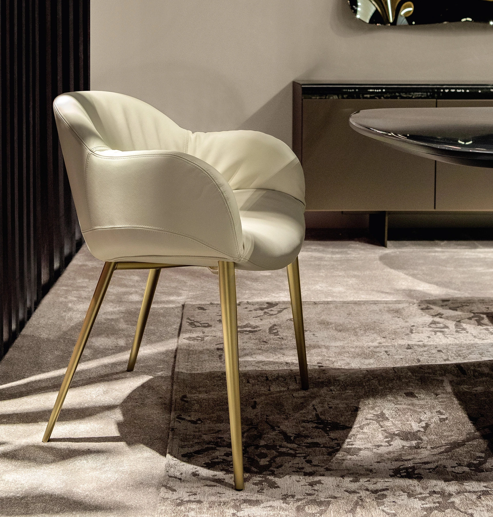 Contattaci e scopri di più sul modello di Sedia in pelle imbottita Olympia di Tonin Casa visibile in foto. Una sedia in pelle come quella qui presente arreda un living o una cucina di elevata qualità, ultimando gli spazi impreziosendoli. In negozio presentiamo esclusivi mobili e oggetti accessori, tra cui troverai sicuramente la soluzione che fa per te. Le sedute design, sia in legno che imbottite, sono arredi complessi, caratterizzati da una gamma praticamente infinita di cromie, forme e pattern. Oltre a assolvere a un ruolo imprescindibile, questi mobili sono in grado di valorizzare uno spazio anche anonimo e privo di accessori.