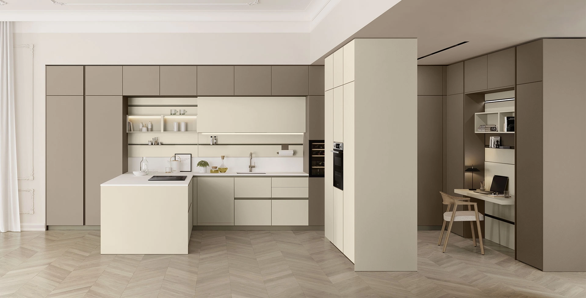 Se desideri una soluzione dalle linee geometriche, caratterizzata da un design meno "pesante", ti suggeriamo di orientare l'acquisto verso le Cucine Moderne del brand Veneta Cucine. Quando scegli una cucina moderna devi dare priorità al modo in cui vivi i tuoi locali, per arredare al meglio la tua composizione d’arredo. A rendere la Cucina Moderna con penisola Lounge 03 di Veneta Cucine una tra le più belle soluzioni del brand, oltre ai suoi bellissimi dettagli, è il materiale: è realizzata in laccato opaco per assicurare comfort e qualità negli anni.